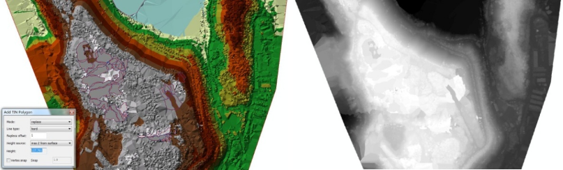 由于水體匹配漏洞、地形起伏引起的投影差存在,自動生成的DEM需要經過平滑內插消除高程誤差,才能用于后期專業分析。
