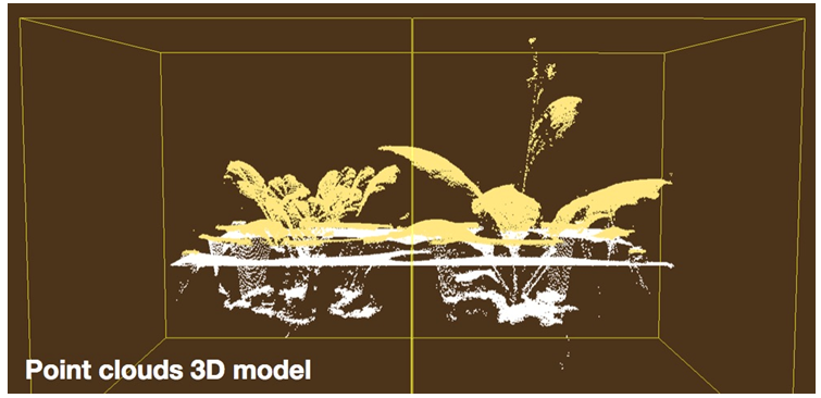 4.3D激光掃描分析(選配):用于植物結構表型分析,通過點云模型自動分析計算植物結構、生物量、葉片數量、葉面積、葉片傾斜角度、植物高度等各種形態結構參數