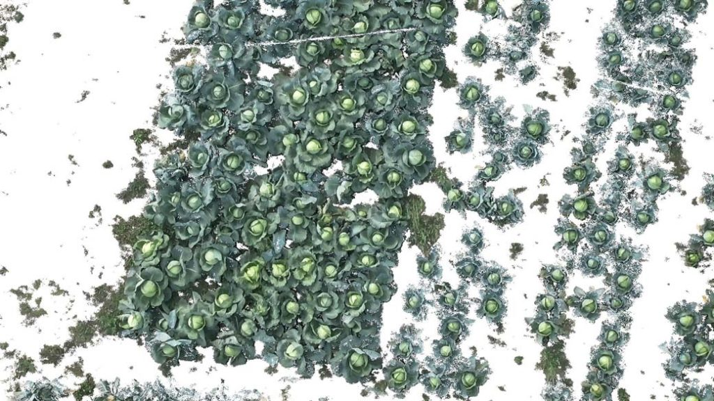 BCI(生物量覆蓋指數)與RGB場景中植被數量的評價有關。基于RGB相機的可見光數據,對包含綠色植被的地面進行評估,并將這些區域與RGB圖像中被白色掩蓋的其他(非植被)區域的百分比進行比較。BCI可由用戶通過簡單的閾值調整,植物百分比實時測量顯示,如下圖所示甘藍占比為65%。