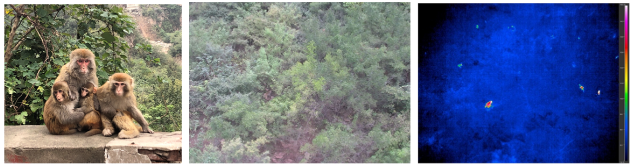 五龍口保護區獼猴調查(西安易科泰光譜成像與無人機遙感技術研究中心供圖)