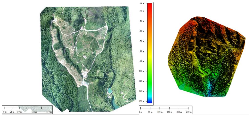 正文用戶可根據三維模型,進行量測實驗區森林冠層覆蓋面積、樹高、裸地面積、及地表徑流長度等,還可結合數字高程模型及其他氣象數據研究垂直尺度的水土流失情況。經用戶最終評判,本次飛行成果質量良好,數據信息量大,可為森林資源管理及水土保持研究提供多維度一手資料。也充分體現了EcoDrone無人機遙感系統的科研利用價值。