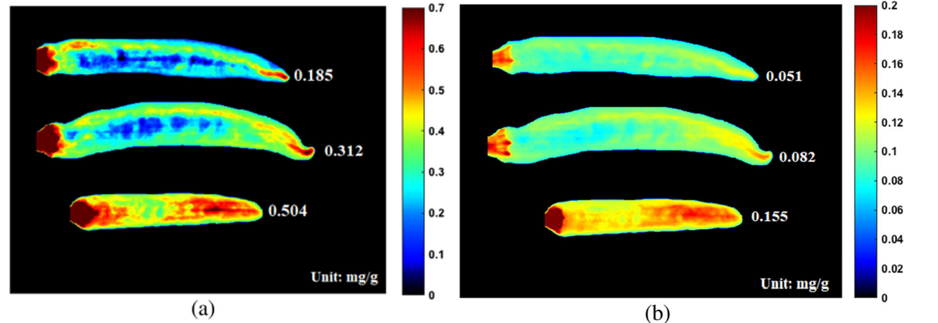 左:青椒中辣椒堿的預測分布圖 右:青椒中二氫辣椒堿的預測分布圖