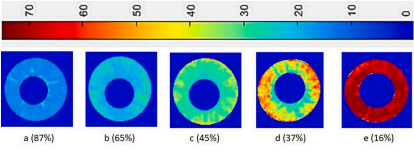 基于1450nm的高光譜數據預測50 ?C烘干的不同蘋果切片可溶性固形物分布圖