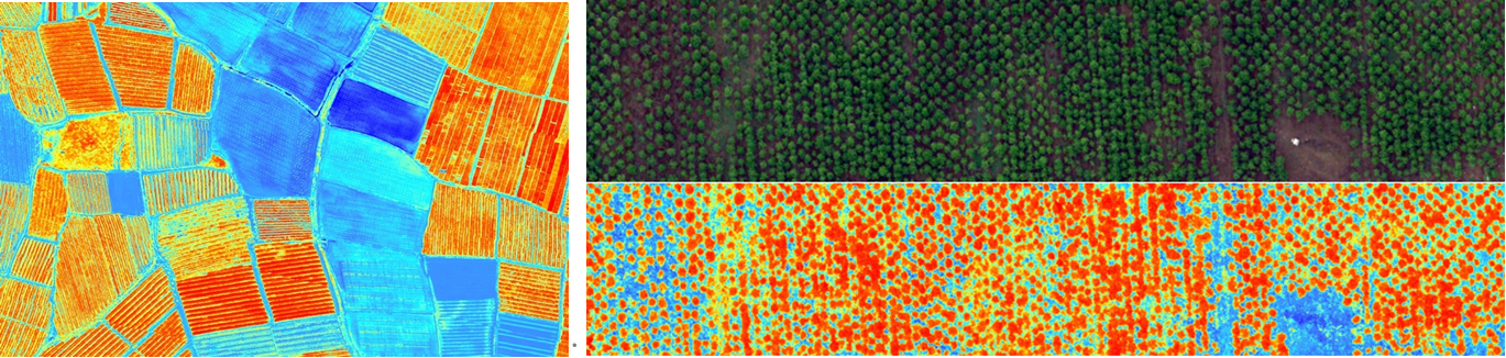 自左到右依次為:稻田表型、人工松樹林無人機高光譜-紅外熱成像遙感分析