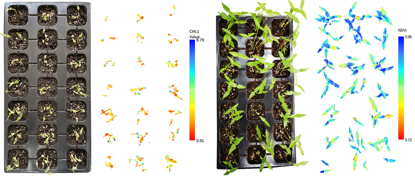 綠豆種苗早期生長階段葉綠素分布及健康性狀可視化表達(易科泰光譜成像實驗室供圖)