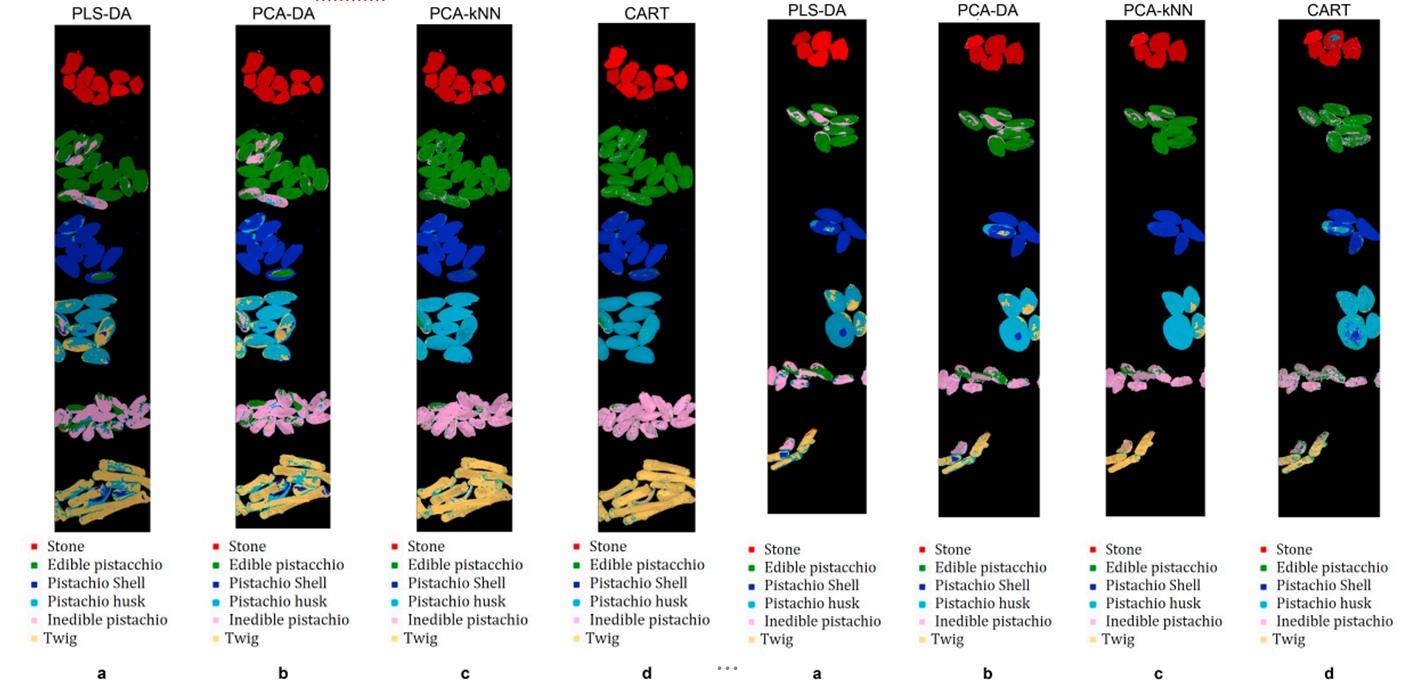 以往使用的HPLC、GC–MS、IR-MS等方法均存在不能實時檢測的弊端。近年來,基于彩色成像(RGB)的機器視覺技術在食品加工過程和品質控制等方面發揮了重要作用,但對螨蟲、霉菌以及其他外來物的識別還是存在短板。意大利實驗人員將高光譜成像(HSI)技術應用于開心果的品質控制中,對樣品的不同理化特征進行定性和定量分析,為食品的品質控制探索更優的策略。
