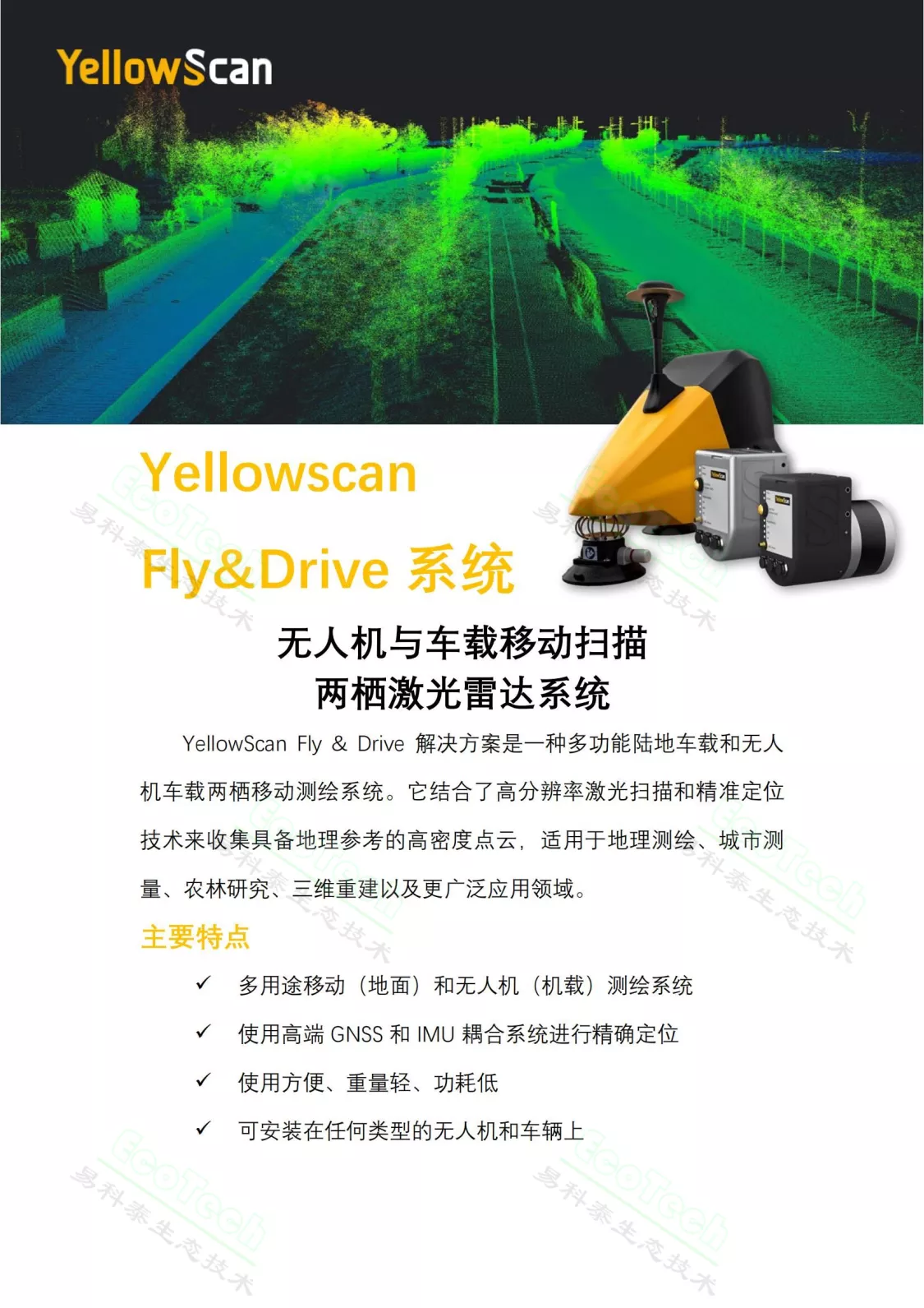 Yellowscan Fly&Drive無人機載與車載兩棲移動掃描Lidar系統
