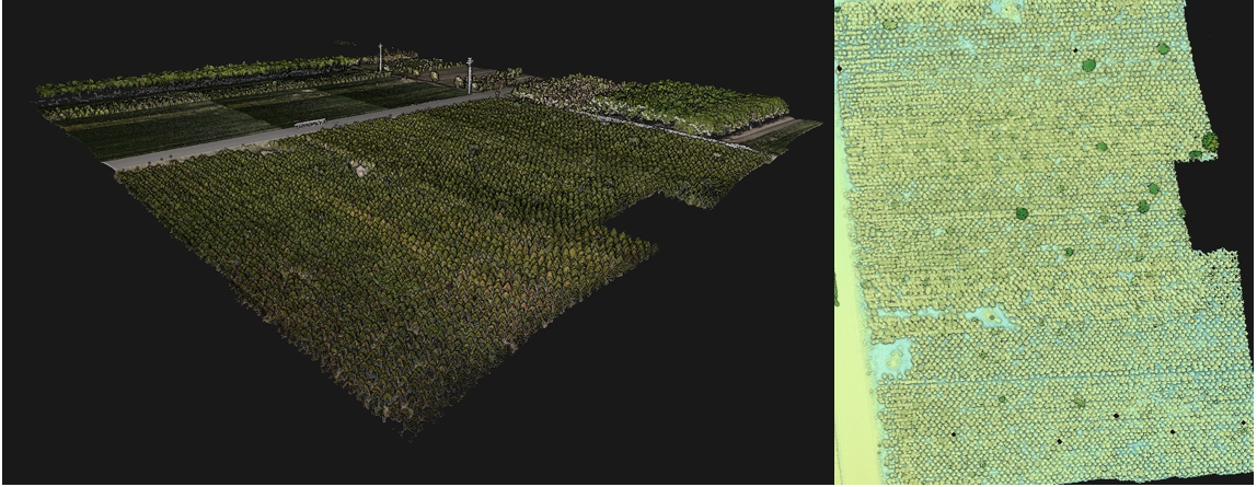 兩個地塊的第2行和第3行不同生長期的點云數據;“341×10”和“Trudan Headless”樣本的最大高度分別為1.4米和3.2米