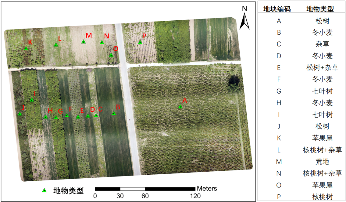 通過LiDAR點云剖面高度測量并結合剔除了地表高程的DHM模型,隨機選取A地塊人工松林15個點,提取其高度值,求取平均值為161cm,和地面人工采樣實測結果基本吻合。