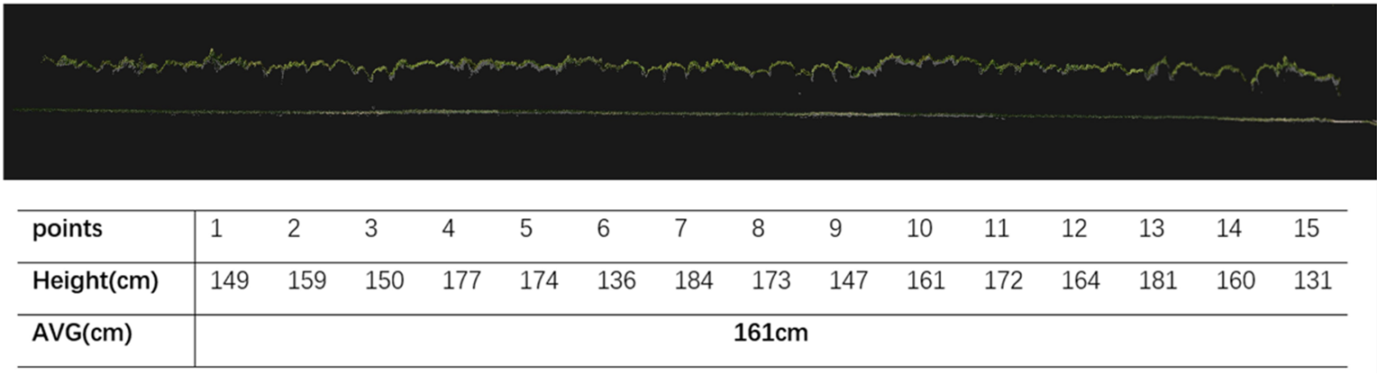 圖2-3:基于LiDAR點云的人工松林高度剖面及測量值
