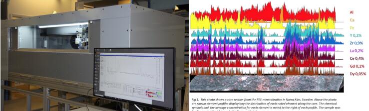 正文采用XRF、數字X-射線密度成像和高分辨率數字光學成像技術,非破壞性測量,獲得樣品高分辨率的數碼圖像,然后利用系統軟件對所得圖像和元素信息進行分析,可對樣芯一次性掃描分析從 Na 到 U 的所有元素及 REE(稀土元素) 濃度及分布,分為 SC 單樣芯掃描分析系統(每次裝載一個樣芯)和 MC 多樣芯(每次可裝載多個樣芯進行分析)掃描分析系統兩個版本。
